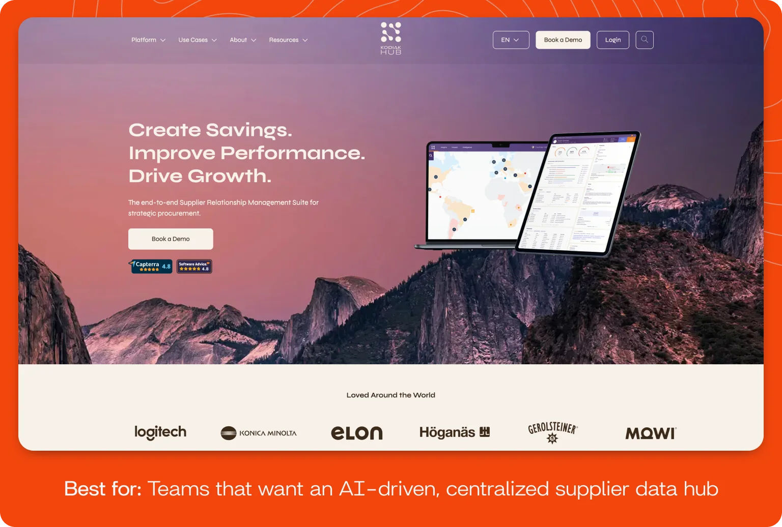Kodiak Hub offers a supplier relationship management (SRM) platform that combines data across suppliers into a single source of truth, giving you a full view of your suppliers, commodities, and categories — from onboarding to performance to innovation. Its AI-driven insights and intelligence help you get real-time information you can use for optimization and improvements.