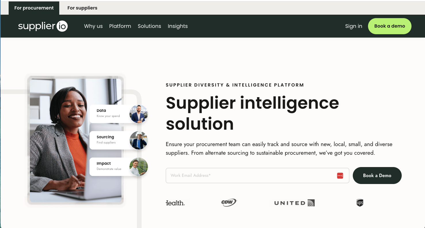 Supplier.io provides a database of over 20 million small, diverse, and sustainable vendors to help meet diversity and sustainability goals. Its automated data enrichment scans your existing partner list to identify diversity credentials you may be missing, keeping your records audit-ready.